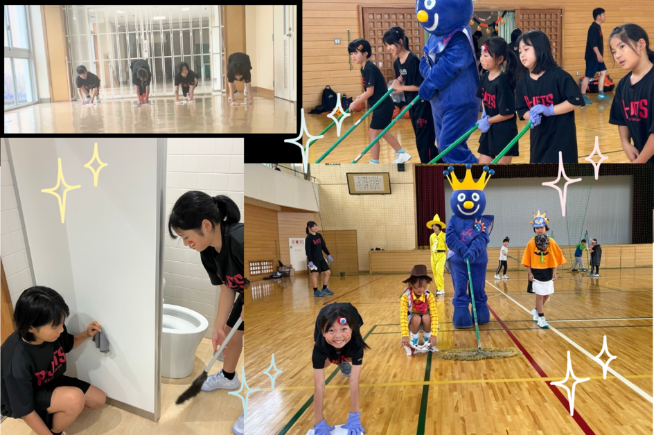 あいにくの雨で屋外でのクリーン作戦は中止して、日頃とてもお世話になっている体育館の中を全員で掃除しました。