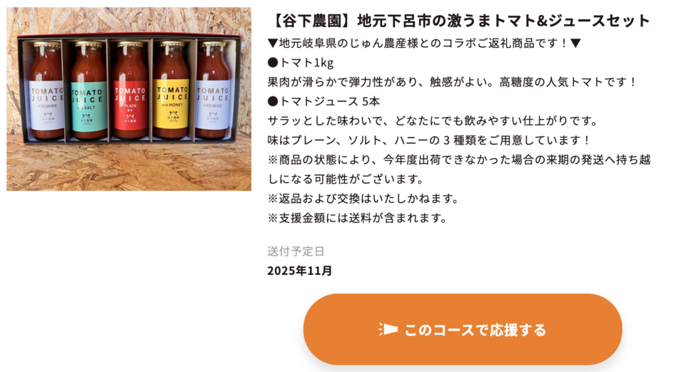 このプロジェクトのご返礼にも、トマトとトマトジュースのセットをご提供いただいています!