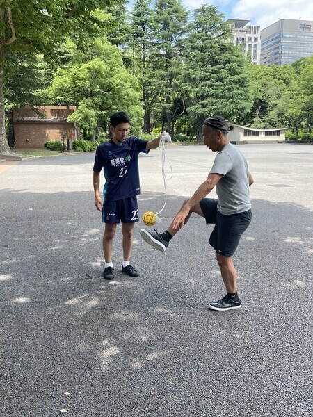 聞けば、テニスの前にウォーミングアップとしてセパタクローボールでリフティングをされているとのこと。