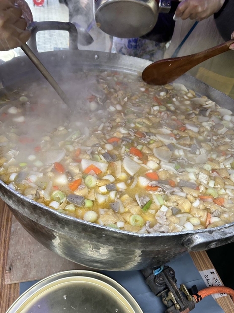 そんなこんなで夢中で大根を切り続けること数十分、7本ほどあった大根は全て見事な白いイチョウへ形を変えました。切った具材を屋外のテントに具材を運んでいよいよ大鍋での調理開始!というところで若林クラブ内の次のお手伝いさんにバトンタッチをしてお手伝いは終了しました。
