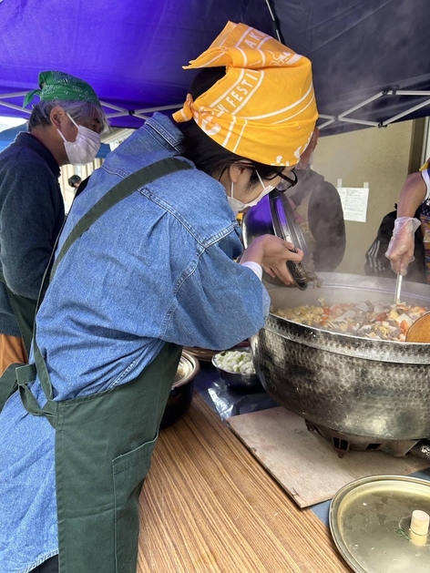 A.S.WAKABAからは石原と山田のふたりがお手伝いとして参加し、お祭りにて販売する豚汁の調理に関わりました。