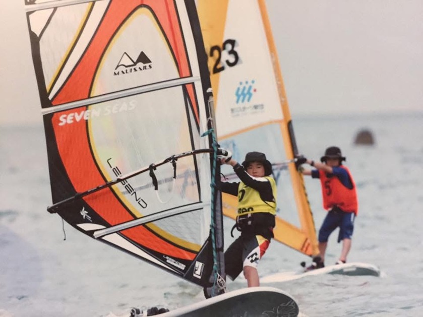 両親の出会いのきっかけはウインドサーフィンでした。そのため、僕も当然のように海へ連れて行かれ、気づいたらウインドサーフィンに乗っていました。1人で乗って進み、ターンして帰って来れるようになったのが5歳の時でその時からをスタートとして現在18年目になります。