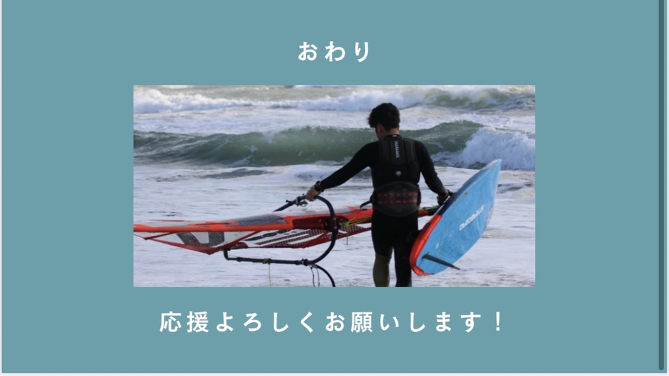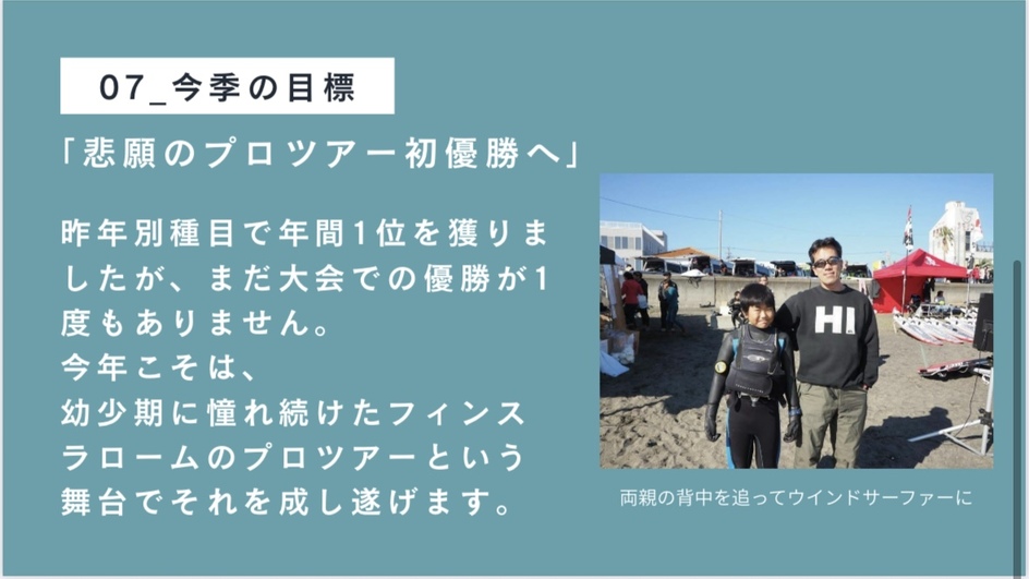 このクラウドファンデングを通じて、ウインドサーフィンというスポーツをより多くの方に知っていただきたいと思います。その中で僕という選手の魅力も感じていただけるように全力を尽くしますので皆様応援の程よろしくお願い致します。