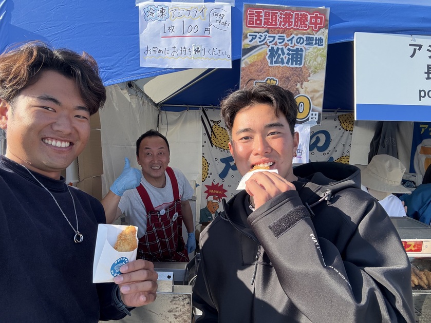 早めに試合が終わったので、午後は会場内を仲間の選手と散策しました。屋台のおじちゃんから頂いたアジフライを食べながらウロウロして2日目は終了です。