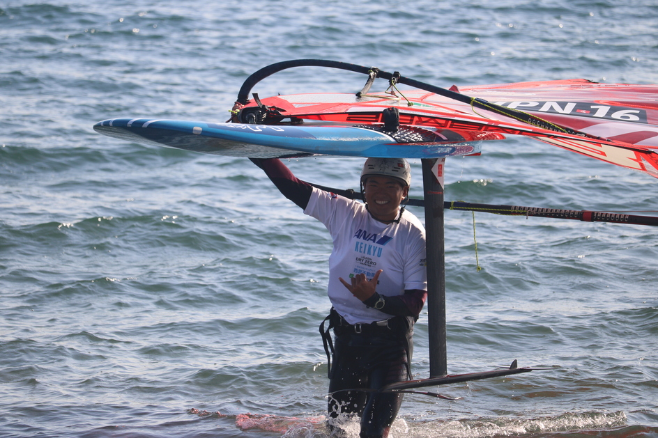 風速は最初の2日間の倍近い数字が出ていましたが、強気で大きめの道具を選択したのが吉と出て第1レース・第2レースともに日本人の中では上位でフィニッシュできました。