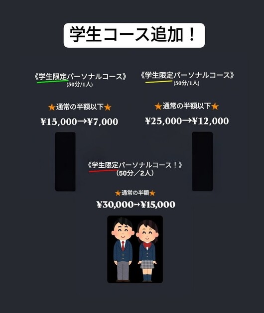 是非学生の皆様にも僕のパーソナルレッスンを受けて頂きたく増設致しました。