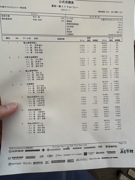 話は戻り、長野県大会3日目と4日目の5km×4リレーと国スポ予選10km Cに出場しました。リレーは大学生3年生チームの3走の仲間に入れてもらいました!